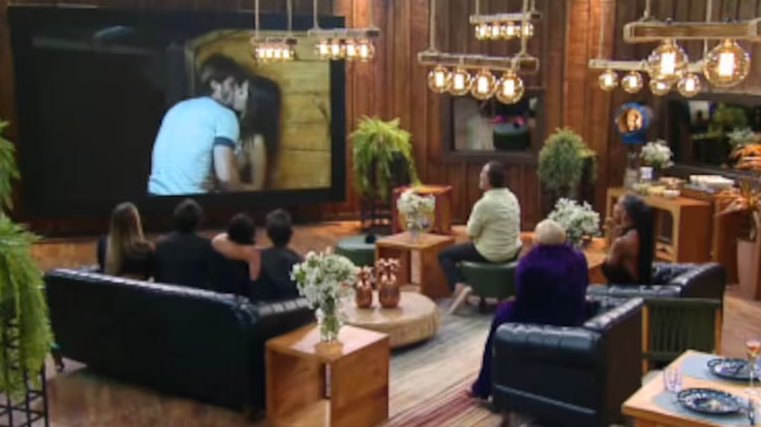 Depois de aproveitarem um cardápio especial e vinho branco, eles viram alguma das tretas, dancinhas e cenas icônicas que marcaram a edição. Luiz Mesquita não disfarçou ter ficado incomodado ao ver o beijão de Duda Wendling e Matheus Martins.