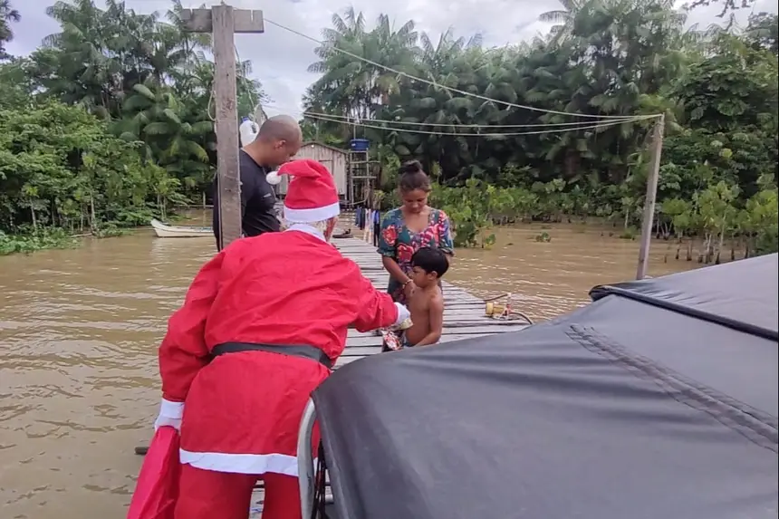 Os agentes de segurança que atuam, de forma integrada, na Base Fluvial de Antônio Lemos, vinculada à Secretaria de Segurança Pública e Defesa Social (Segup), promoveram, no Dia de Natal (25), uma manhã festiva para as crianças que moram nas ilhas ribeirinhas as proximidade do distrito de Antônio Lemos, no município de Breves, no Marajó. Cerca de 75 crianças receberam presentes com a presença do papai noel.