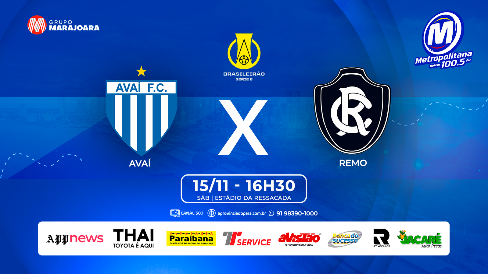 Avaí e Remo se enfrentam neste sábado (15), às 16h30 (horário de Brasília), no Estádio da Ressacada, em Florianópolis. O confronto é válido pela 37ª rodada da Série B do Campeonato Brasileiro e o Grupo Marajoara fará a cobertura completa em tempo real.