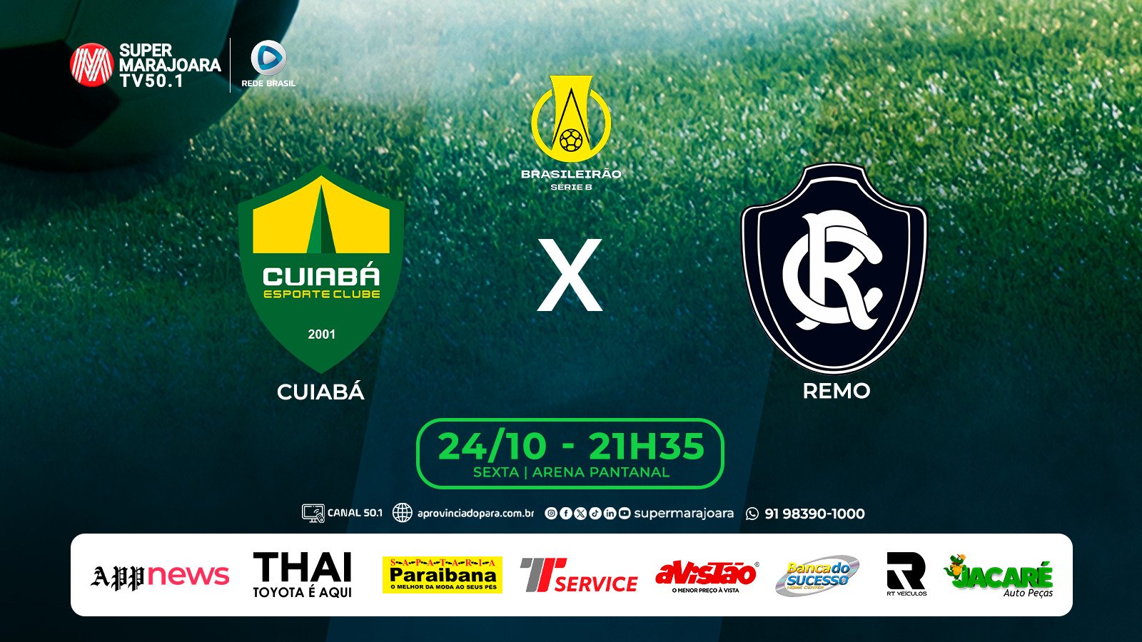 O jogo será realizado na Arena Pantanal, em Cuiabá, às 21h35 (de Brasília) / 20h35 (MT), e terá transmissão ao vivo pelo Grupo Marajoara. O confronto é decisivo tanto para o Cuiabá manter viva a chance de acesso, quanto para o Remo sonhar com o título.