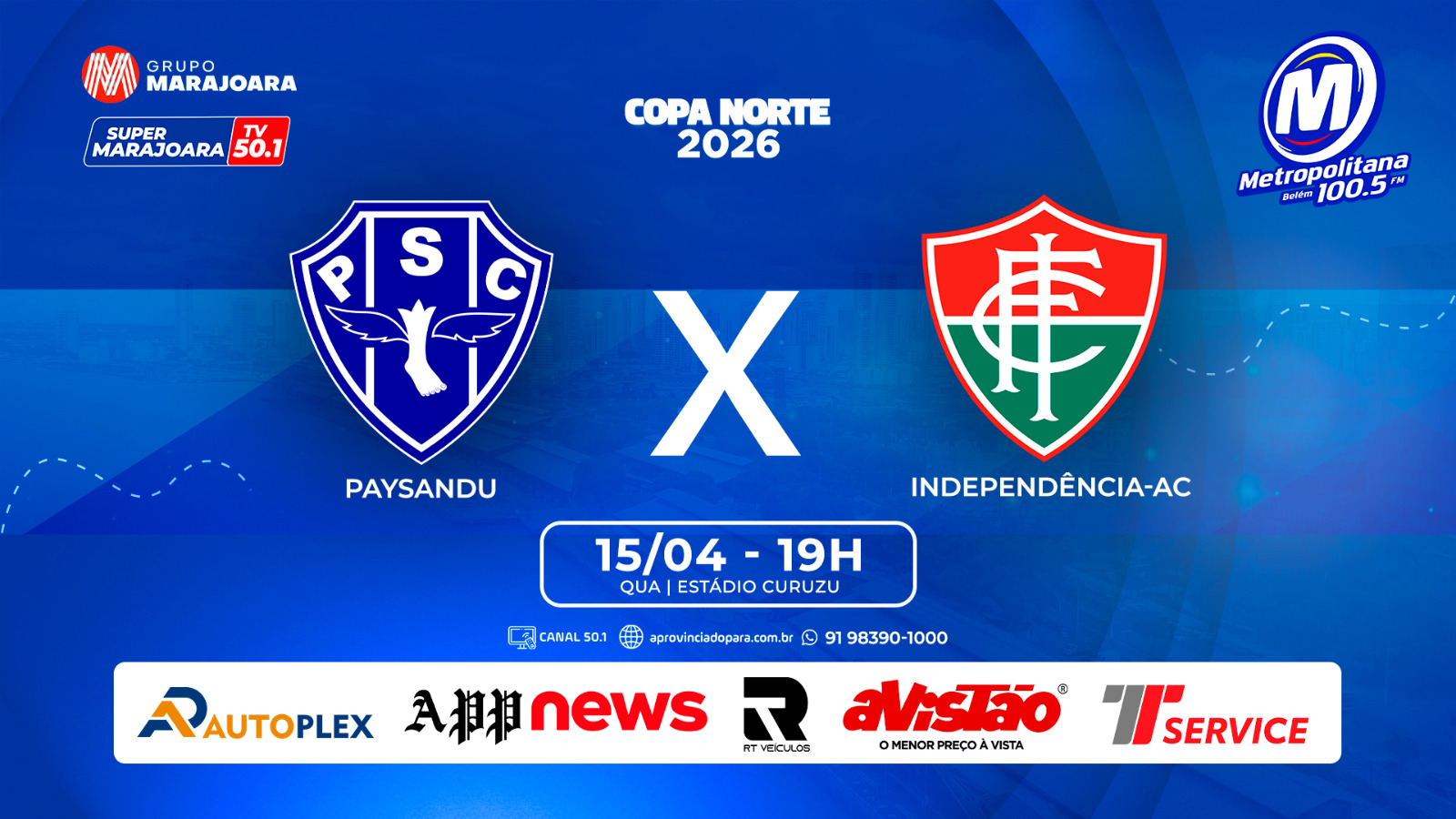 O Paysandu Sport Club entra em campo nesta quarta-feira (15), às 19h, para mais um compromisso pela Copa Norte. O adversário será o Independência Futebol Clube, em partida marcada para o Estádio da Curuzu, em Belém.