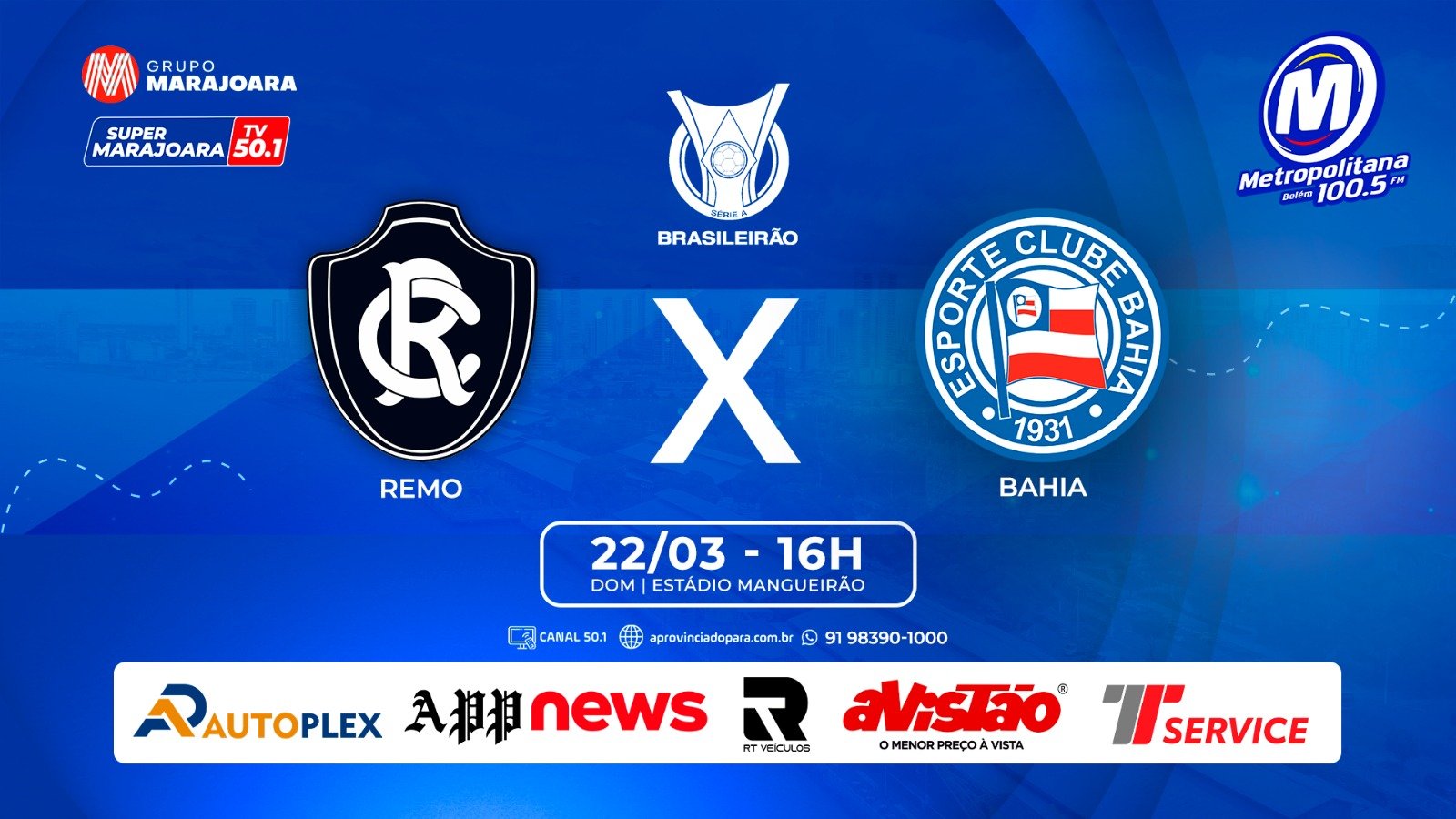 Para os torcedores que não puderem comparecer ao “Colosso do Galante”, a partida terá transmissão ao vivo pela Metropolitana Belém 100.5 além do acompanhamento em tempo real em todas as plataformas digitais.