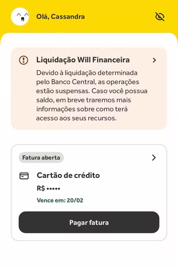 Além da dificuldade para movimentar o dinheiro, correntistas afetados pela liquidação do Will Bank, decretada pelo Banco Central nesta quarta-feira (21), enfrentam outro problema: a cobrança de faturas do cartão de crédito mesmo com as contas bloqueadas.