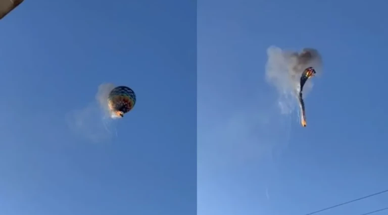 Vídeos gravados por moradores mostram o balão em chamas no céu e, em seguida, o momento em que o cesto despenca em direção ao solo.
