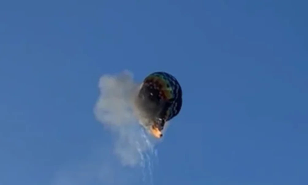 Vídeos gravados por moradores mostram o balão em chamas no céu e, em seguida, o momento em que o cesto despenca em direção ao solo.