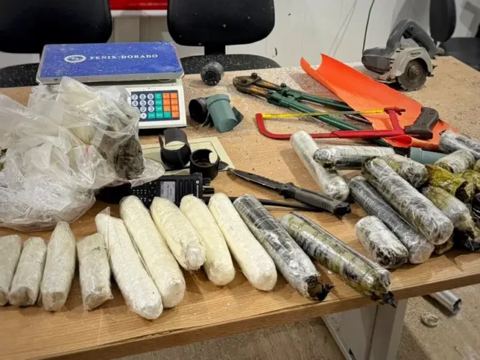 Além do material análogo ao “skunk”, os agentes encontraram mais de 1 quilo de substância semelhante à cocaína, ambos escondidos em tubos de alumínio