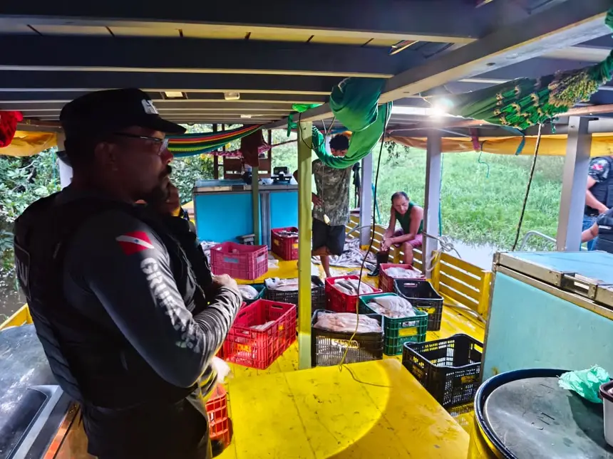 Durante a averiguação em campo, as equipes localizaram uma embarcação de pequeno porte escondida em um “furo de rio”. No interior, foi constatado o transporte irregular de cerca de cinco toneladas de mapará, espécie protegida neste período. O comandante da embarcação foi identificado com mais duas pessoas.