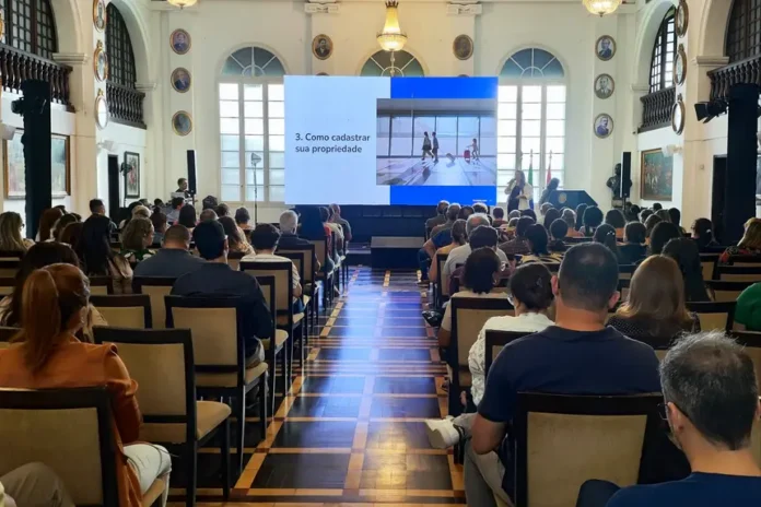 Na tarde desta terça-feira (18), o Salão Nobre da Associação Comercial do Pará (ACP) sediou mais um workshop promovido pela plataforma Booking.com, com o objetivo de orientar proprietários de imóveis sobre o cadastro de hospedagens para a 30ª Conferência das Nações Unidas sobre Mudanças Climáticas (COP 30), que será realizada em Belém, no mês de novembro. O evento foi realizado em parceria com a ACP e Sebrae, apoiado pelo Governo do Pará, por meio da Secretaria de Estado de Turismo (Setur).