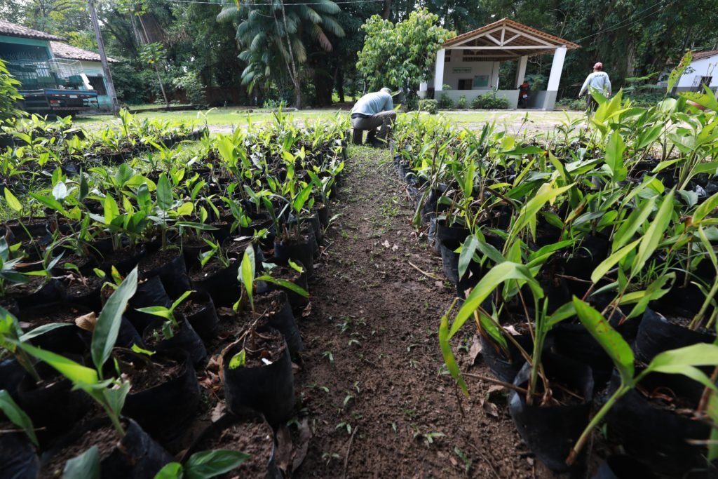 O processo de produção envolve uma cadeia de etapas cuidadosas — desde a preparação do solo até o desenvolvimento final da muda. Entre os insumos utilizados estão terra preta, serragem e caroço de açaí.