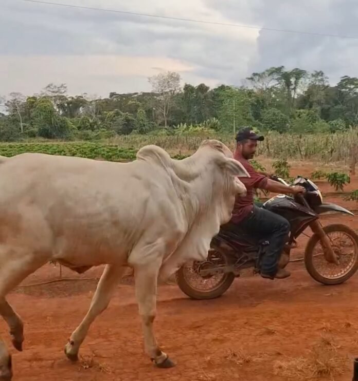 Um vídeo compartilhado nas redes sociais por Bia Bertusse mostra que não são apenas cachorros que gostam de correr atrás de motos. O boi, conhecido como Berrante, aparece todo empolgado e persegue o veículo assim que ele começa a se mover.