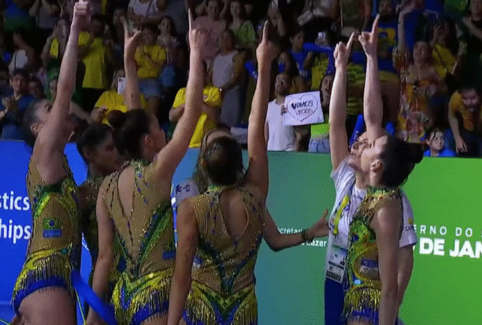 A ginástica rítmica do Brasil já ganhou medalhas em torneios importantes, mas nunca tinha subido ao pódio num campeonato mundial. Por esse objetivo, cada movimento é comemorado como um gol.