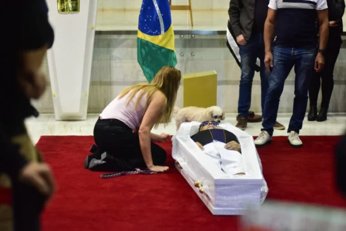 No velório do cantor Nahim, que começou nesta quinta-feira (13) e segue até esta sexta (14) na Assembleia Legislativa de São Paulo (Alesp), um detalhe chamou a atenção do público: o caixão do músico foi colocado no chão para que seus cachorros pudessem se despedir do músico.