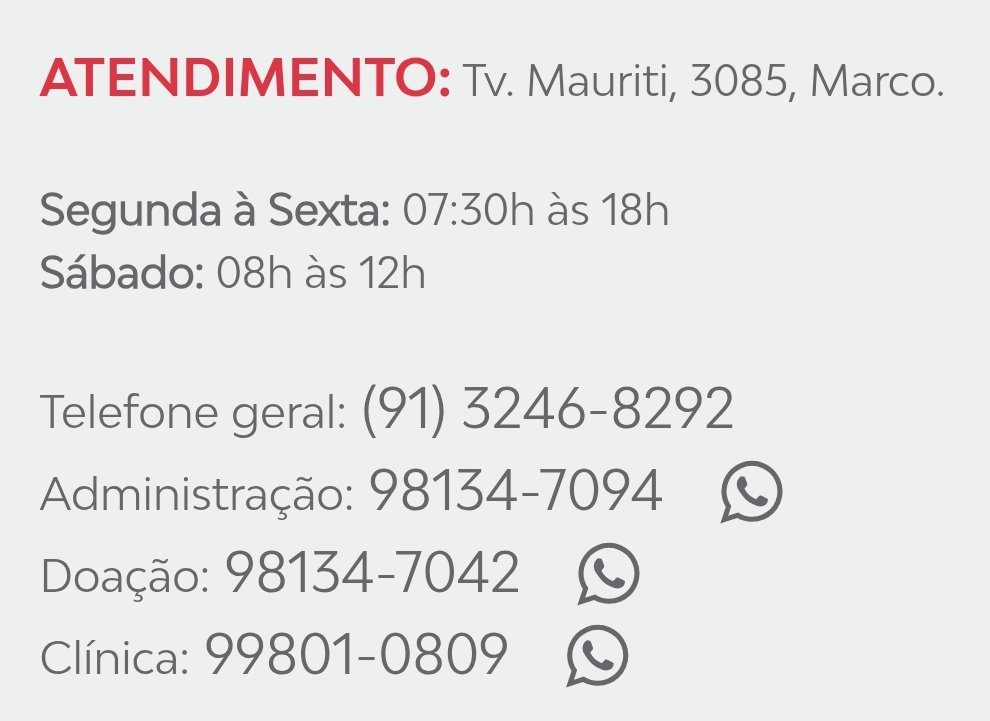 - WhatsApp (Setor de Doação): (91) 98134-7042