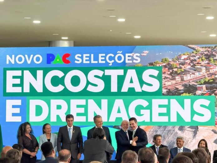 O prefeito de Capanema, Claudionor Moreira, participou ao lado do presidente Luiz Inácio Lula da Silva e do ministro das Cidades Jader Filho, no último dia 18, em Brasília (DF), no Palácio do Planalto, do anúncio dos resultados do Novo PAC Seleções para drenagem urbana e contenção de encostas. O município do nordeste paraense está entre as 29 cidades do Pará beneficiadas com os investimentos. O objetivo do programa é reduzir a vulnerabilidade de populações que vivem em áreas de risco, reforçando a capacidade de resposta do país a eventos climáticos extremos.