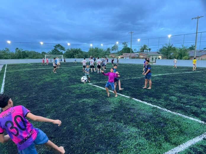 A estrutura conta com campo de futebol society, quadra de basquete, pista de caminhada e playground, oferecendo opções para diferentes faixas etárias e incentivando hábitos saudáveis entre crianças, jovens e adultos.