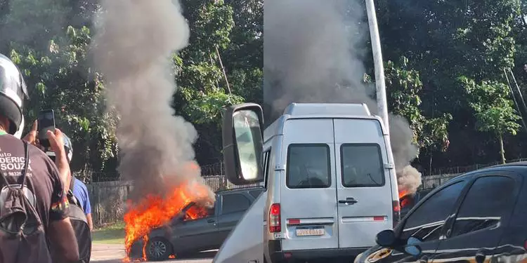 Na manhã desta quinta-feira (16), um carro pegou fogo na Avenida Augusto Montenegro, próximo à Rua da Marinha, no bairro do Mangueirão, em Belém. O Corpo de Bombeiros Militar do Pará foi acionado para controlar as chamas, que consumiram rapidamente o veículo.
