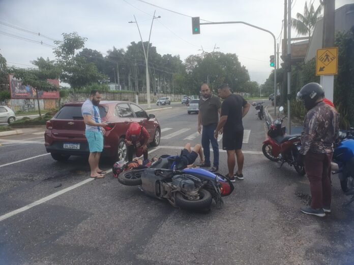 Casal fica ferido em acidente com moto e automóvel na Avenida João Paulo II