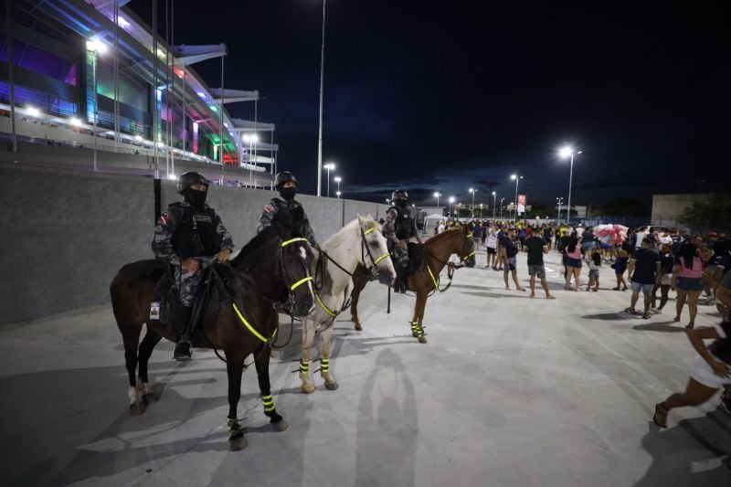No sábado (20), no Mangueirão, com show gratuito para cerca de 50 mil pessoas, haverá reforço no policiamento das vias de acesso, ordenamento de trânsito, uso de unidades especializadas para emergências, delegacias específicas para grandes eventos, atuação da Delegacia do Torcedor e fiscalização no entorno.