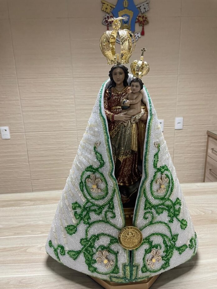 Foi neste momento, em Miami, que ela começou a desenhar as primeiras ideias para o manto. “Todos os detalhes e a essência do manto foram feitos ali. Em Belém fiz alguns ajustes. Vestir Nossa Senhora de Nazaré é algo inexplicável. O Espírito Santo me guiou para fazer algo tão belo como este manto”, relata Letícia.