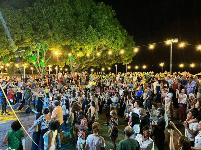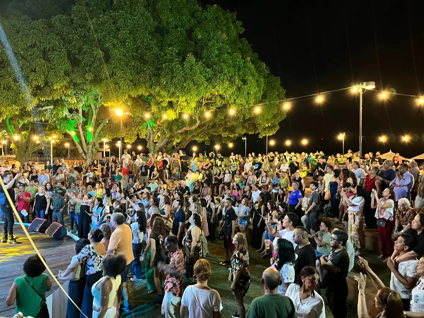 O primeiro dia do Círio na Estação 2025 foi marcado por uma grande mobilização de fiéis no Anfiteatro da Estação das Docas, em Belém. Centenas de pessoas ocuparam o espaço para participar das atividades culturais e religiosas programadas para o evento.