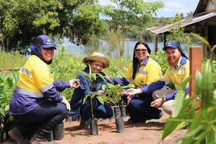 O diferencial da operação reside na parceria com quatro associações comunitárias da região do Juruti Velho: Associação dos Produtores Rurais Familiares das Comunidades Nova Galileia e Nova Esperança; Associação de Produtores Rurais Familiares Grupos Unidos; Associação de Produtores Rurais Familiares Seis Unidas; e Associação de Produtores Rurais Familiares das Comunidades de Três Vistas. A atividade mobiliza cerca de 140 famílias para a produção e entrega das mudas, e mais 40 comunitários que são contratados para a realização do plantio nas áreas de reabilitação.