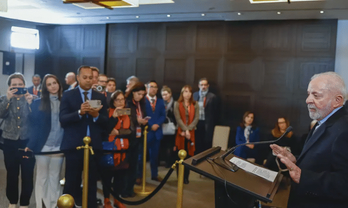 Durante a conversa com a imprensa, Lula foi questionado sobre a declaração do secretário de Defesa dos Estados Unidos, Pete Hegseth, de que o país norte-americano deve “recuperar o seu quintal”, em referência à América Latina.