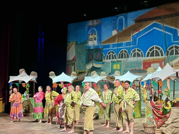 A terceira noite da 5ª Mostra de Teatro Nilza Maria, em Belém, apresentou o espetáculo “Ver de Ver-O-Peso”, do Grupo Experiência, na noite de sábado (21), no Theatro da Paz. Há décadas, a montagem leva aos palcos um dia na Feira do Ver-O-Peso – referência cultural, turística e econômica na capital paraense -, por meio de situações vivenciadas pelos feirantes, visitantes e comerciantes, além de destacar a diversidade do local.
