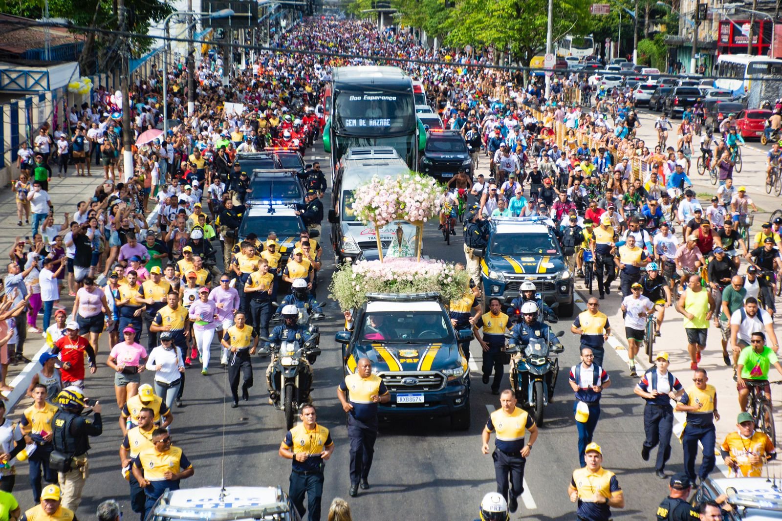 A duração estimada é de 10 horas, com chegada prevista para às 18h. Ao longo do percurso, a procissão deve reunir cerca de 1,5 milhão de pessoas. Toda a operação conta com a organização da Polícia Rodoviária Federal (PRF), com apoio da Diretoria da Festa de Nazaré (DFN), Guarda de Nazaré, DETRAN, Batalhão Águia da PM, Guarda Municipal de Belém (GMB), Guarda Municipal de Ananindeua (GMA), Guarda Civil de Marituba (GCM), Polícia Militar (PM), SEGBEL, SEMUTRAN de Ananindeua, SETRAN de Marituba e Corpo de Bombeiros.