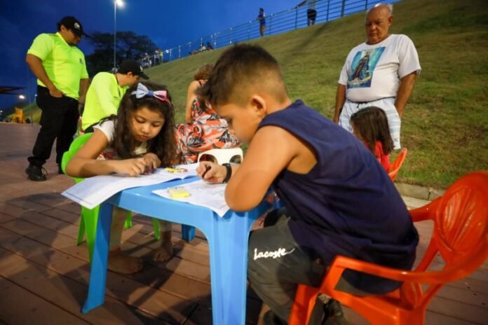 Seguindo com as educativas na Operação Festas Seguras, a equipe de educação do Departamento de Trânsito do Estado do Pará (Detran) realiza em Salinópolis uma programação infantil para conscientizar as crianças sobre segurança viária.