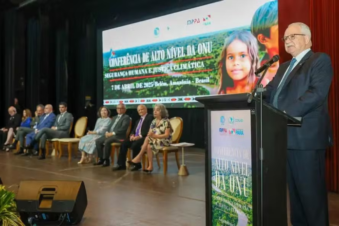 A Conferência de Alto Nível da ONU, Segurança Humana e Justiça Climática, que ocorreu durante a manhã desta segunda-feira (07) em Belém.  O vice-presidente do Supremo tribunal Federal, Luiz Edson Fachin, abriu a primeira sessão da conferência com sua importante fala abordando a segurança humana, justiça climática, e aprofundou seu discurso envolto ao combate a macrocriminalidade, crime que envolve grandes quantidades de vítimas e tem como objetivo o lucro, e que é recorrente na Amazônia.
