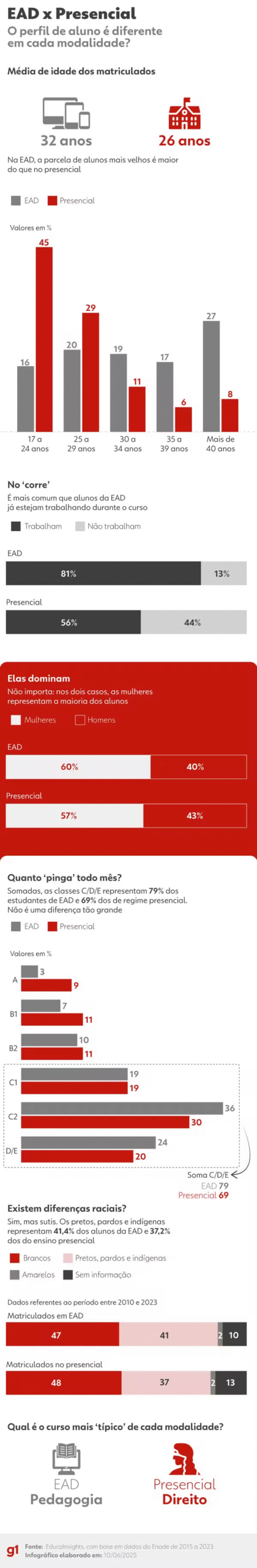 EAD ou presencial: qual modalidade tem alunos mais velhos? E mais ricos? Infográfico mostra diferença de perfis