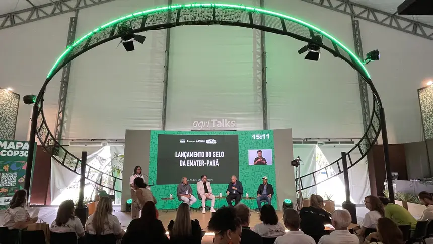 O Governo do Pará, por meio da Empresa de Assistência Técnica e Extensão Rural do Estado do Pará (Emater-Pará), lançou o Selo Emater Pará, na manhã desta sexta-feira (21), na Agri Zone (Arena Agri Talks), na Embrapa, durante a programação da COP 30 (30ª Conferência Mundial sobre Mudanças Climáticas), em Belém.