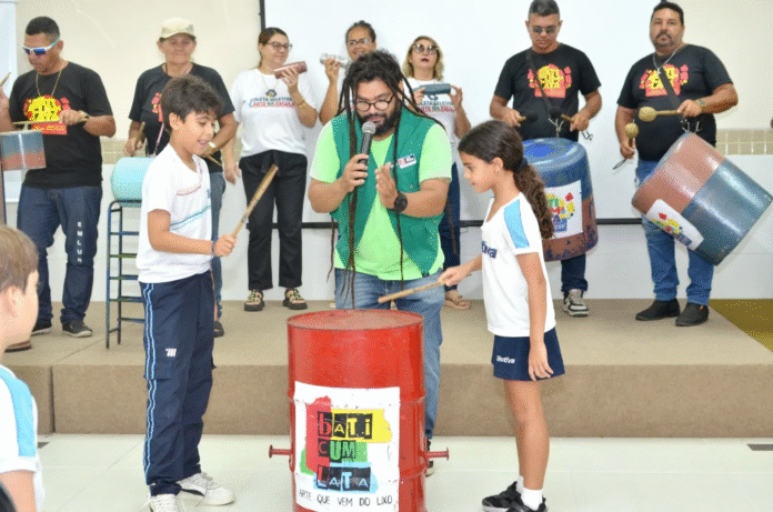 Nesta semana, uma escola privada recebeu a visita da Emlur com muita alegria. As atividades foram realizadas com alunos do quarto ano, somando mais de 100 crianças. O estudante Arthur Amaral estava muito animado com a programação. O que ele mais gostou foi da apresentação do Baticumlata. Inclusive, ele se juntou ao grupo, tocando tambor. “Com essa atividade, eu aprendi que devemos preservar o planeta e o meio ambiente. Também explicaram sobre a separação de resíduos entre úmido e seco, que eu também acho muito importante”, contou.