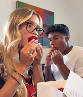 Gabriely Miranda, de 22 anos, esposa de Endrick, de 19 anos, atacante do Real Madrid, compartilhou um vídeo em suas redes sociais mostrando a reação do jogador ao experimentar o “morango do amor”, o doce que virou febre na internet.