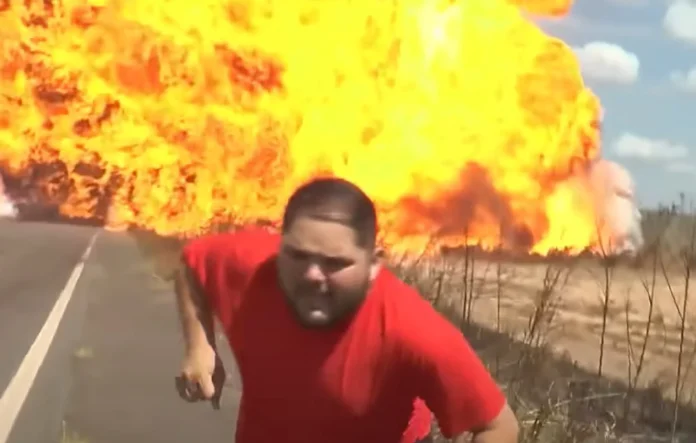 Assista ao momento em que o caminhão explode: