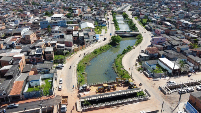 O Governo do Pará entregou, neste domingo (18), o Canal da Cipriano Santos, no bairro da Terra Firme, em Belém. Esta é a terceira obra de saneamento concluída pelo Estado como legado da realização da COP30, cuja execução contou com recursos do Governo do Estado e do Governo Federal, por meio do BNDES. O investimento faz parte dos serviços estruturantes de macrodrenagem da Bacia do Tucunduba, que beneficia cerca de 500 mil pessoas na capital paraense.