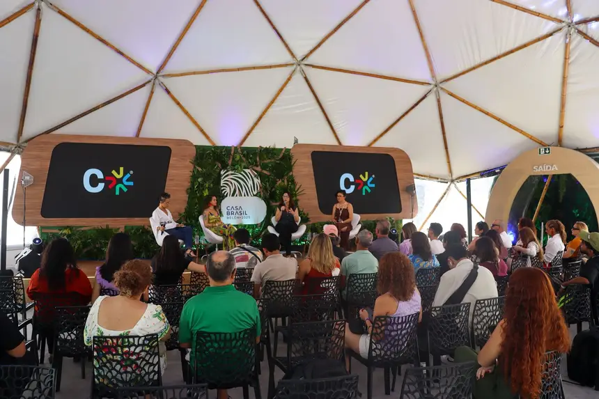O programa Festival Coletivo, organizado pelo Serviço Brasileiro de Apoio às Micro e Pequenas Empresas (Sebrae) na Casa Brasil, vem trazendo debates importantes em um dos eventos paralelos a COP30. Na ocasião, a secretária adjunta de Bioeconomia da Secretaria de Meio ambiente, Clima e Sustentabilidade (Semas), Camille Bemerguy, esteve presente no debate do painel “Territórios vivos: sociobioeconomia e direitos dos povos”.