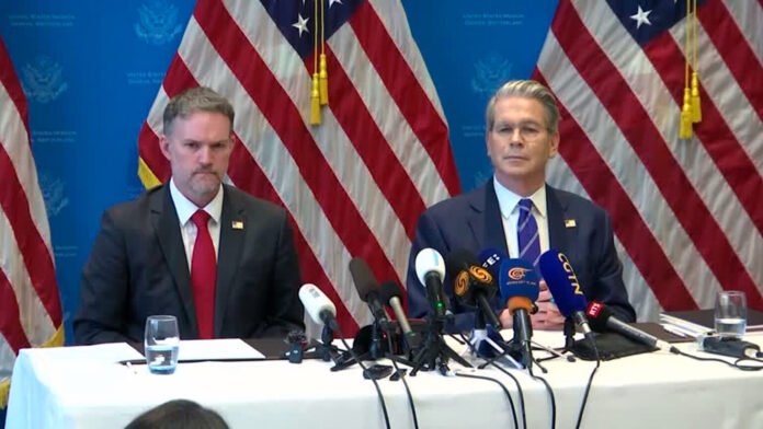 Bessent falou ao lado do representante comercial estadunidense, Jamieson Greer, após as negociações do fim de semana, nas quais ambos os lados elogiaram o progresso na redução das diferenças.