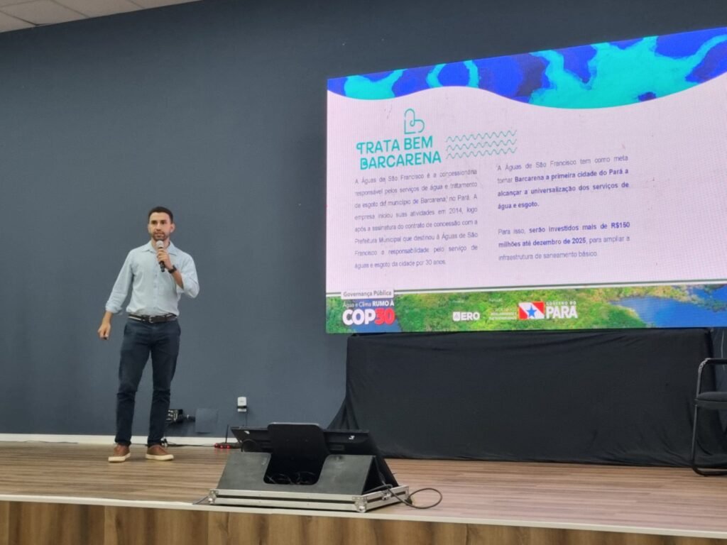 Ações nas áreas de recursos hídricos, monitoramento hidrometeorológico e a mitigação das mudanças climáticas no Pará foram apresentadas durante o evento “Governança Pública: Água e Clima Rumo à COP30”, realizado pela Secretaria de Meio Ambiente e Sustentabilidade do Estado (Semas) nos dias 25 e 26 de março, em Belém. A Águas de São Francisco participou do evento com uma apresentação que abordou as experiências da empresa em segurança hídrica e sustentabilidade no fornecimento de serviços de saneamento básico no município de Barcarena.