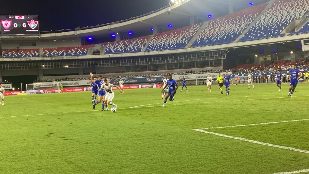 O Fluminense fez o jogo da primeira fase da Copa do Brasil contra o Águia de Marabá na noite desta quarta-feira, 26, no Estádio Olímpico do Pará Jornalista Edgar Proença, o Novo Mangueirão, e arrasou com a equipe paraense, que, melancolicamente, se despede da competição. Foram 8 a 0, e teriam sido 12 a 0 caso o Tricolor Carioca não tivesse desperdiçado quatro chances de gols.