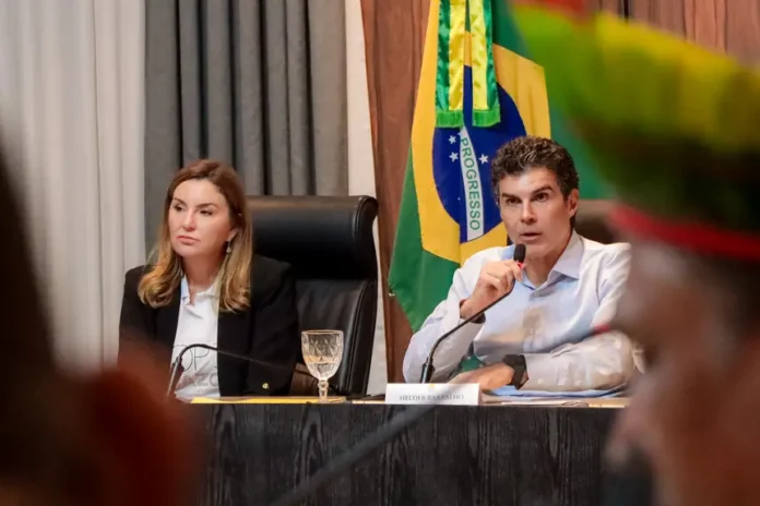 O governador Helder Barbalho e a vice-governadora Hana Ghassan participaram, na tarde desta sexta-feira (24), da reunião técnica do Grupo de Trabalho (GT) instituído pelo Decreto Estadual Nº 4.430/2025 para elaboração da Política Estadual de Educação Escolar Indígena. A reunião foi realizada no Palácio dos Despachos, sede do Poder Executivo Estadual paraense, em Belém.