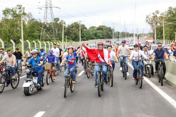 Durante a entrega, Helder Barbalho destacou a relevância da obra para a mobilidade e o desenvolvimento urbano do Estado e aproveitou a agenda para percorrer a nova via de bicicleta. “Gostaria de dizer da satisfação de estar encerrando esta etapa com esta obra extraordinária, significa das mais importantes intervenções urbanas de mobilidade da história deste Estado. Hoje nós estamos inaugurando a Avenida Liberdade com 14km de via expressa com conceito de sustentabilidade em que nós viabilizamos essa rodovia a partir do aproveitamento das margens de servidão do linhão da Eletronorte para reduzir os impactos ambientais, apenas em 1,8% da área verde existente nesta região, houve necessidade de supressão”, informou Helder.