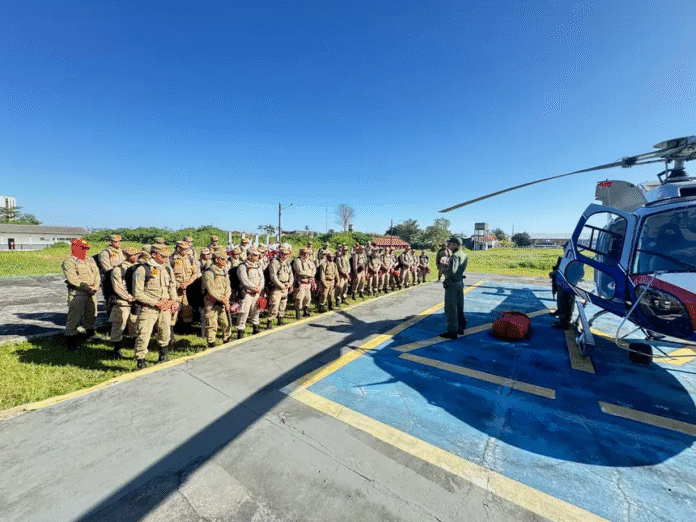 Temas essenciais – As instruções são ministradas pelo tenente-coronel Leandro Tavares, que destaca a importância da formação e a participação do Graesp nas operações de combate aos crimes ambientais. “A instrução que estamos realizando no Graesp aborda temas essenciais para a segurança e eficiência das operações aéreas, com foco em aeronaves do tipo helicóptero AS350 Esquilo. Foram repassados conhecimentos sobre características técnicas da aeronave, riscos associados à operação com helicópteros, além de procedimentos seguros para embarque, entre outros temas pertinentes à operacionalidade da aeronave, bem como procedimentos operacionais para ações de segurança realizadas no combate a incêndios florestais”, disse o coordenador e orientador da formação.