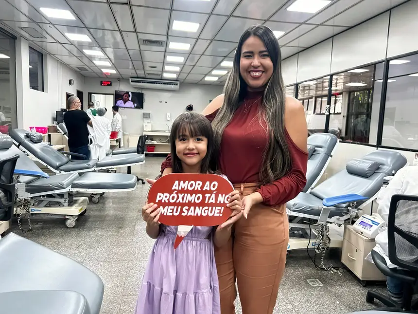 A pedagoga e empreendedora Bianca Ramylly Farias, doadora regular, compartilha o gesto solidário com a filha Maitê, de 7 anos. “Sempre digo que doar sangue é salvar vidas. A gente nunca sabe quando pode precisar. Minha filha me acompanha e entende o valor disso. Cresceu vendo a doação como algo natural”, contou. A pequena Maitê já segue os passos da mãe: “Acho bonito quando minha mãe doa sangue. Quando eu crescer, quero ajudar também”, disse.