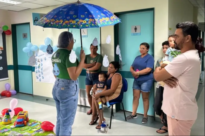 Na sexta-feira (21), o Hospital Regional Público do Marajó (HRPM), em Breves, realizou uma ação de humanização para os pequenos usuários, em comemoração ao Dia Mundial da Infância e em antecipação ao Dia Mundial da Água, celebrado neste sábado (22). A ação, que aconteceu no Hall de Clínicas do hospital, foi conduzida pelo Núcleo de Educação Permanente (NEP), em parceria com a Comissão de Sustentabilidade (CS), promovendo dinâmicas interativas para envolver os pacientes pediátricos nas temáticas abordadas, bem como oferecendo brindes e lanche especial.