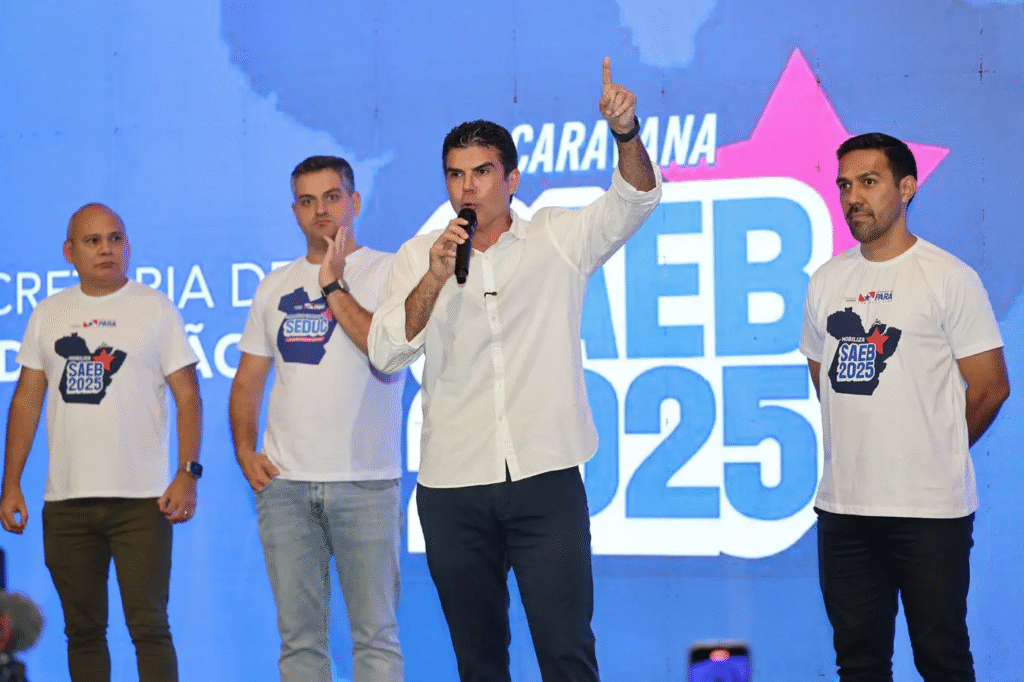 O governador Helder Barbalho participou do evento e enfatizou o valor do trabalho coletivo: agradeceu os resultados obtidos até aqui e incentivou os participantes a continuarem com motivação, determinando que Belém avance em uma educação que corresponda às expectativas dos estudantes paraenses .