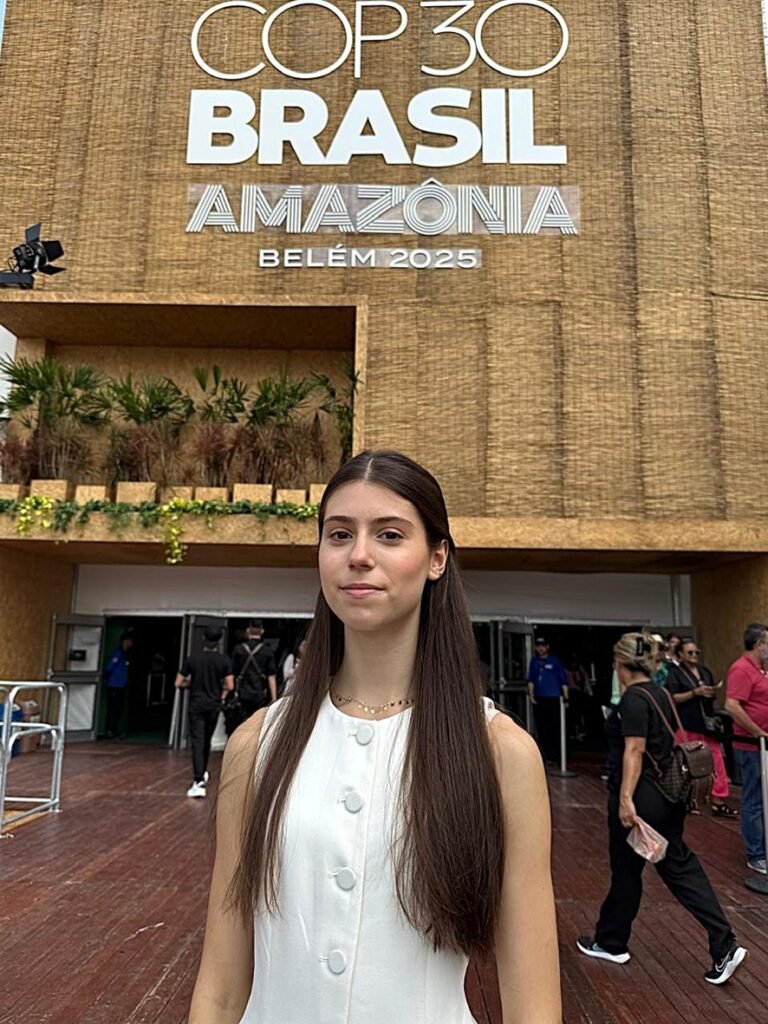 A estudante Manuela Schwartz, de 16 anos, está em Belém acompanhando os debates da COP30, em busca de entender melhor os impactos das mudanças climáticas e como elas se conectam à educação e à desigualdade social. Integrante da ONG One Goal e do Instituto Fome de Tudo, Manuela participa de painéis com especialistas e líderes globais, representando a voz de uma geração que quer agir pelo futuro do planeta.
