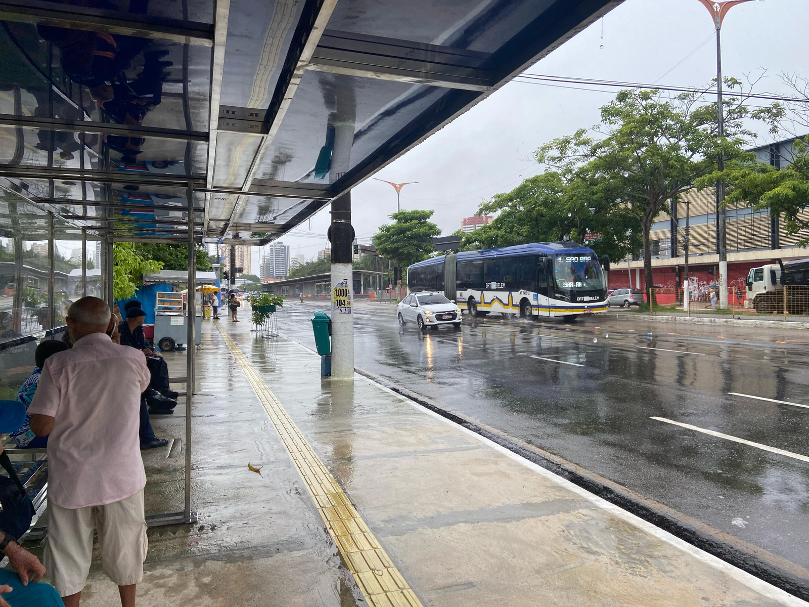 Passageiros recebem orientação nas novas paradas, que oferecem três abrigos amplos e arborizados. O local conta com assentos e cobertura, proporcionando maior conforto. Oito agentes de transporte auxiliam os usuários nas paradas antiga e nova.