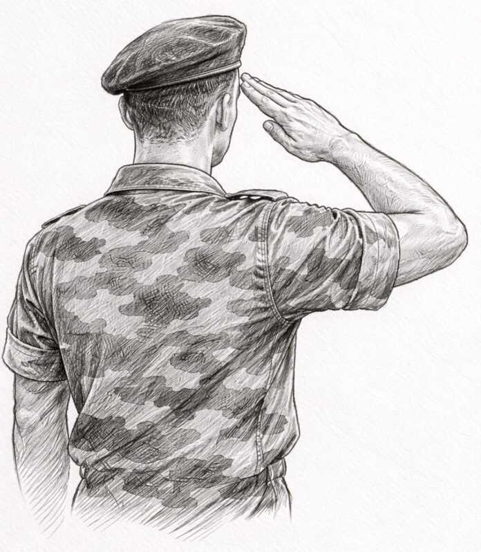 Aos olharmos, ele apontou pra mim e acenou com a mão direita para ir até ele. Saí imediatamente, dando um pique e ao chegar junto a ele me pus em posição de sentido. E ao fazer continência, respondi: “pronto magnifico chefe”! Ele respondeu a minha continência e ordenou que eu fosse buscar o talabarte que ele usaria para prender a vara da bandeira brasileira, que estava em uma picape estacionada a uns 200 metros. Sai correndo, peguei o talabarte e voltei correndo. E ao chegar junto ao capitão eu disse: “pronto grandioso chefe”! Em seguida desloquei-me até o meu pelotão.