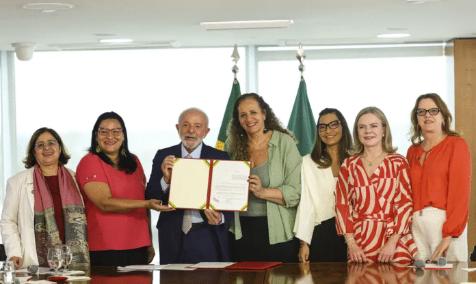 O presidente Luiz Inácio Lula da Silva sancionou, nesta quinta-feira (24), três projetos de lei sobre o combate à violência e proteção de direitos das mulheres, como no uso de imagens de inteligência artificial e na concessão de bolsas acadêmicas. Em reunião fechada, no Palácio do Planalto, Lula afirmou que as mulheres brasileiras, aos poucos, estão ganhando proteção contra qualquer tipo de violência.